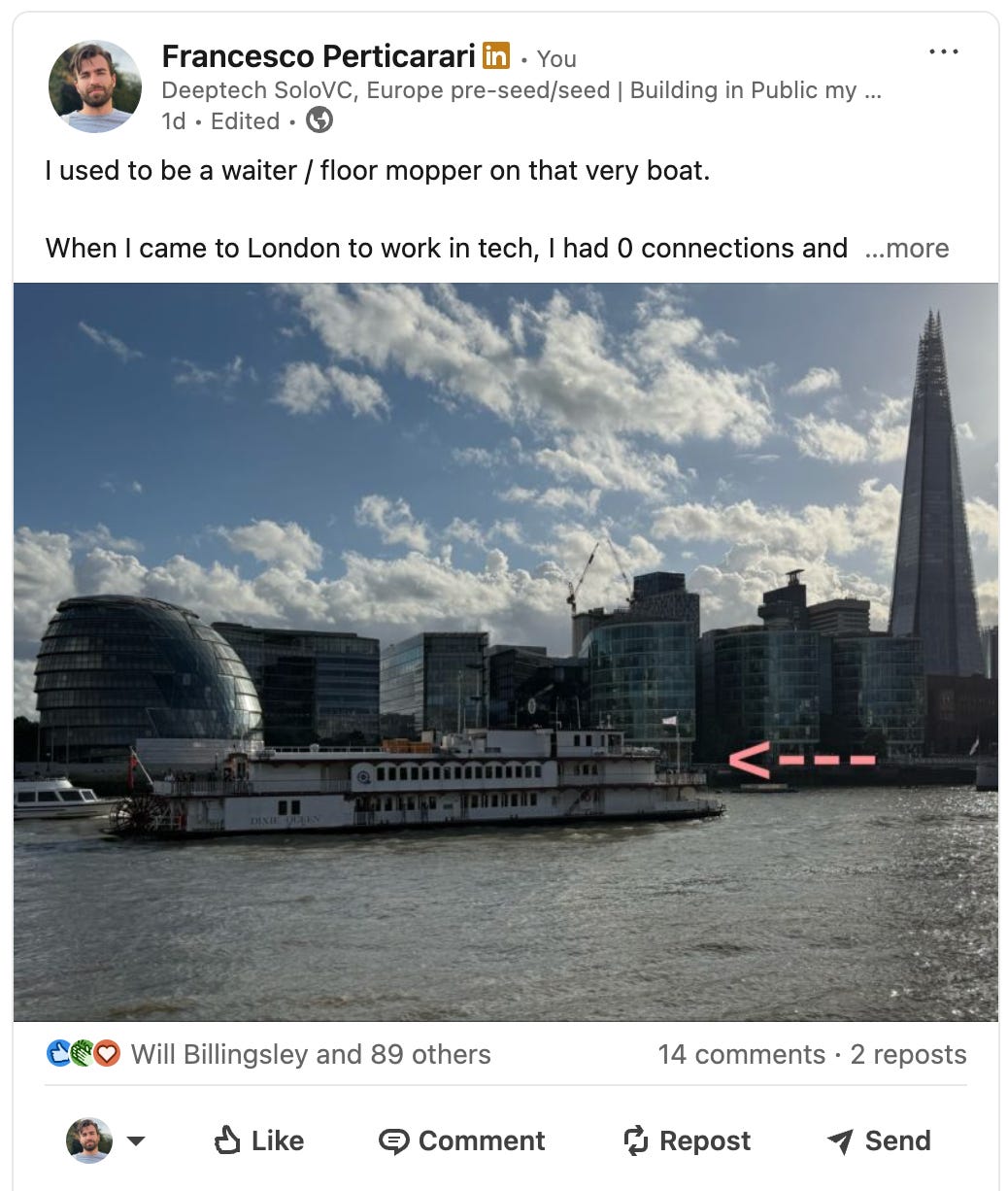 After we shared our Letter to Limited Partners and started to book calls, we already secured £1.25m in pledged commitments and about another million that may be confirmed soon. All from existing LPs we’ve spoke with.