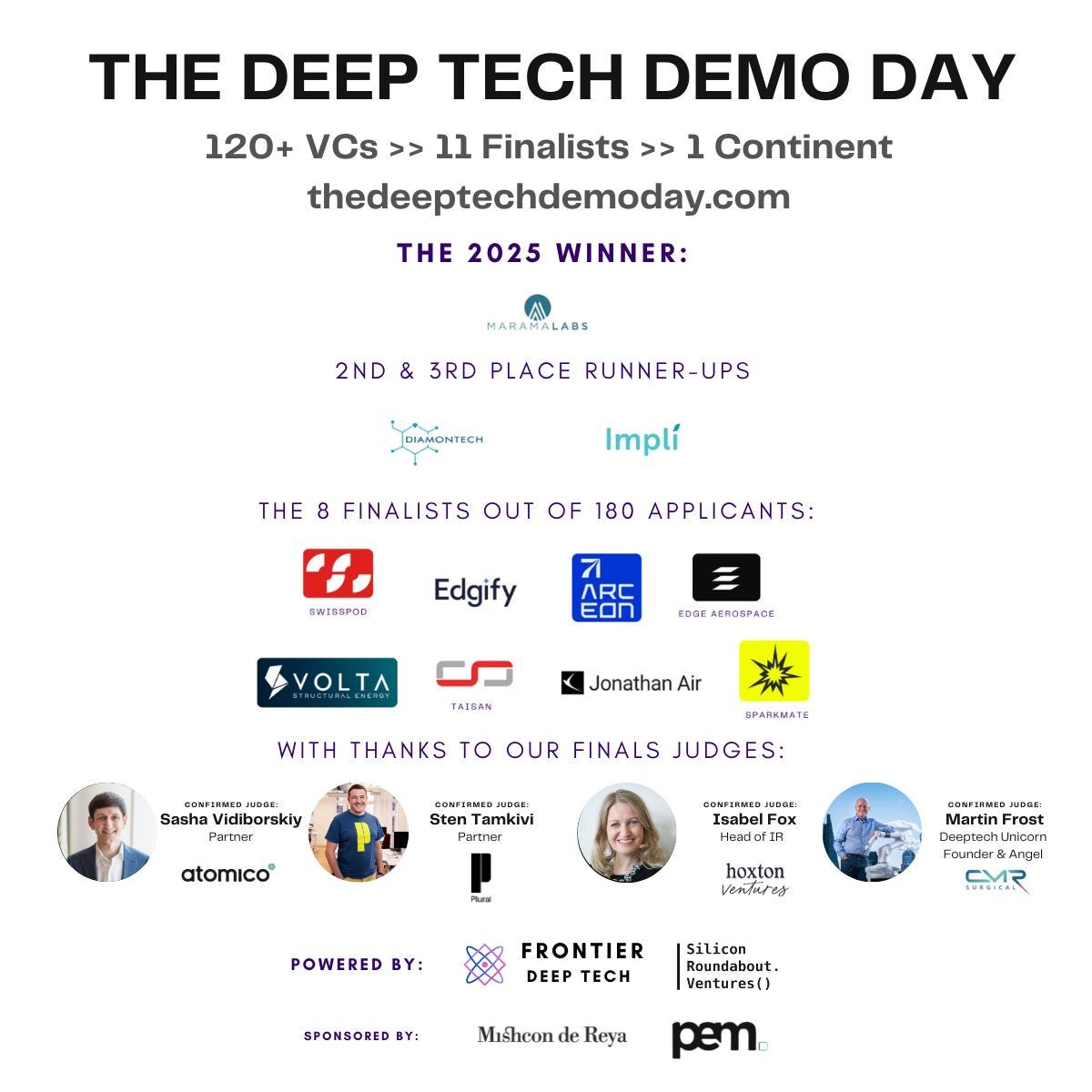 Deeptech Demo Day Winners - Marama Labs takes the crown from 200 European deeptech applicants, with DiaMonTech and Impli as runners-up